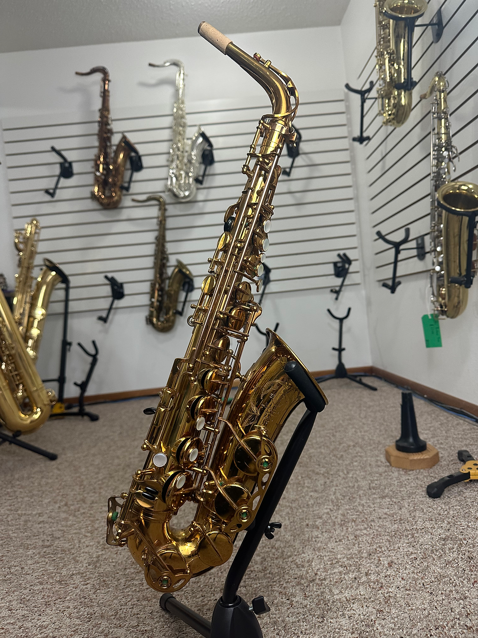 The early 140000 medium bow Mark VI alto is a sweet spot of tuning response and tone, favored by David Sanborn and Kenny Garrett. This one has an exceptionally loud and clear voice.